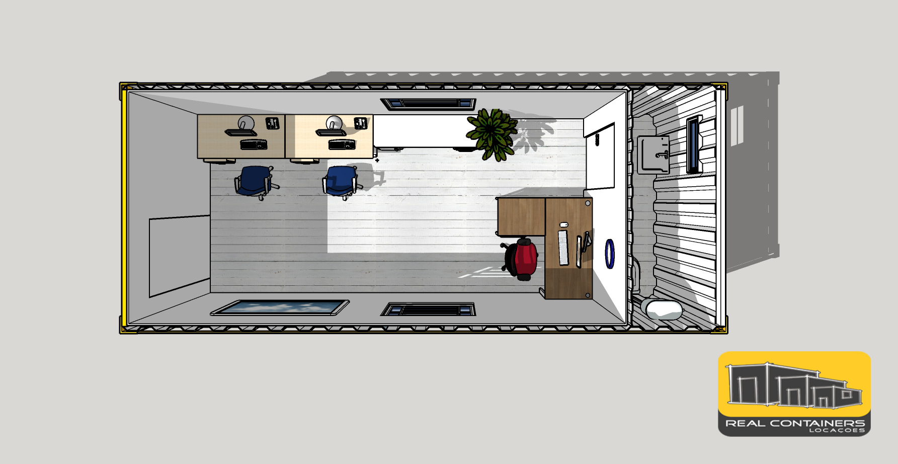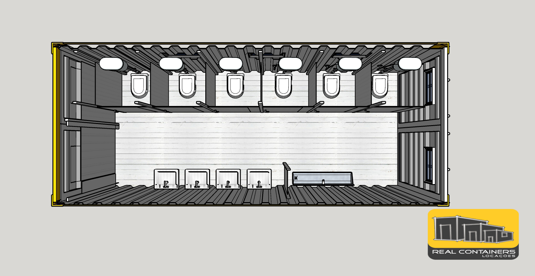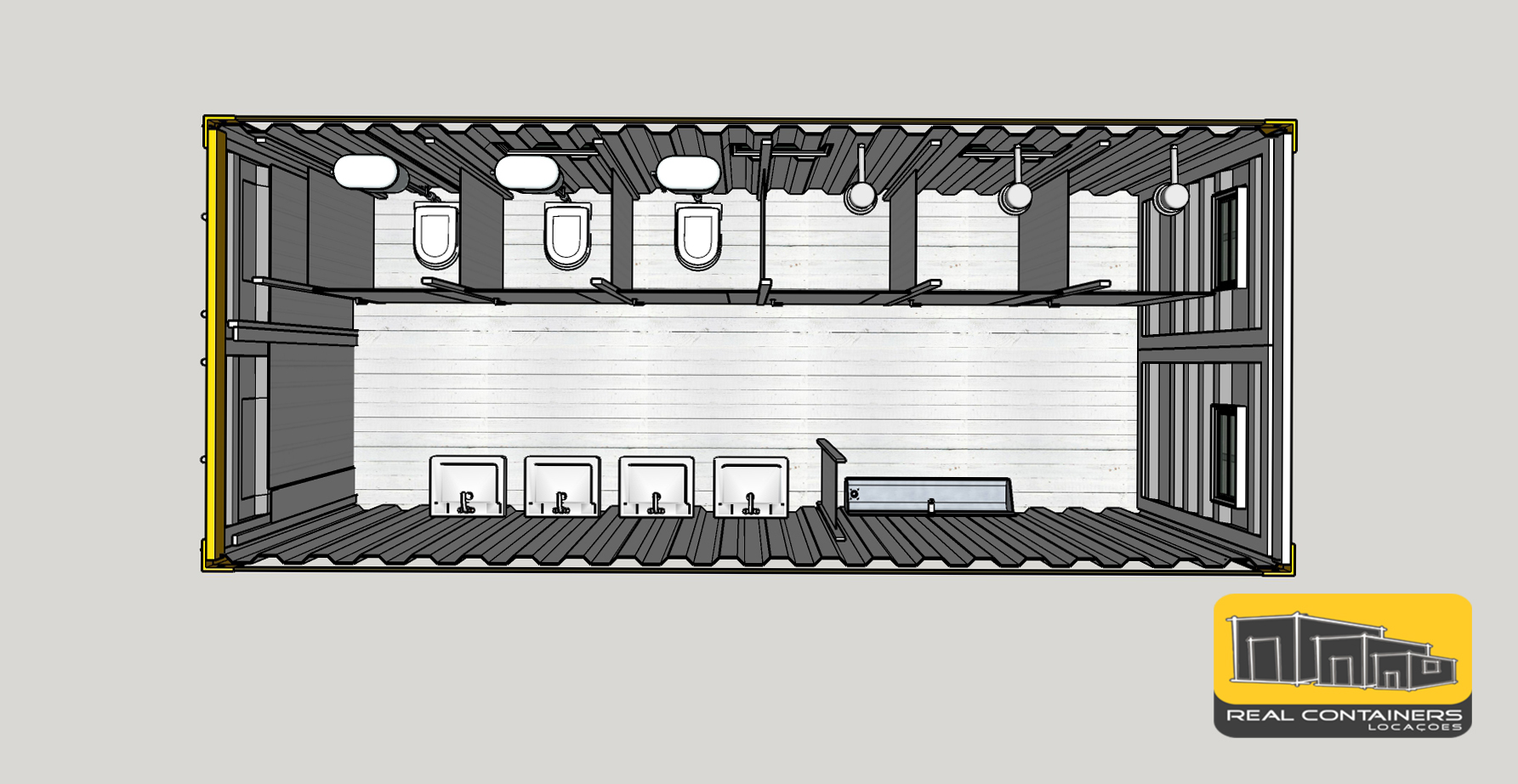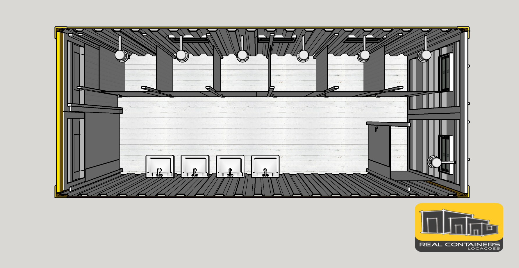 A Real trabalha com containers navais certificados, que permitem empilhamentos, observando as normas técnicas, personalizando e adequando cada produto a sua inteira necessidade.